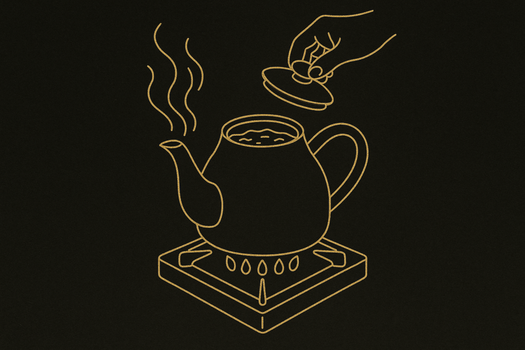 ② 香りが立ったら火を止め、茶葉を入れて約2分置く。